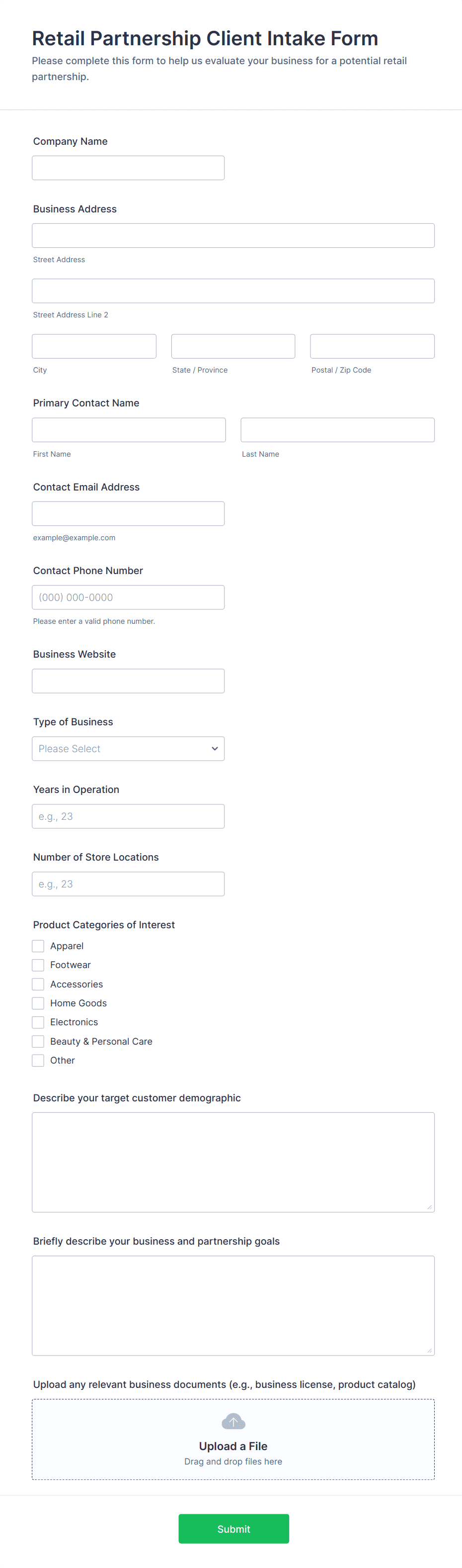 • Corporate Partnership Forms could request case studies, references, and compliance certifications.
