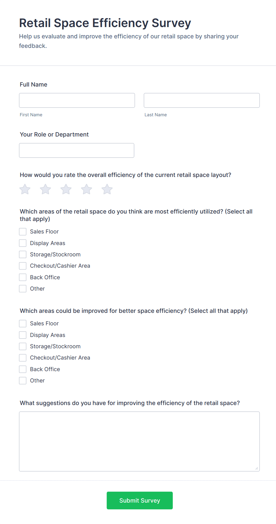 For employee surveys, consider adding anonymity options; for customer surveys, include contact fields if follow-up is needed.