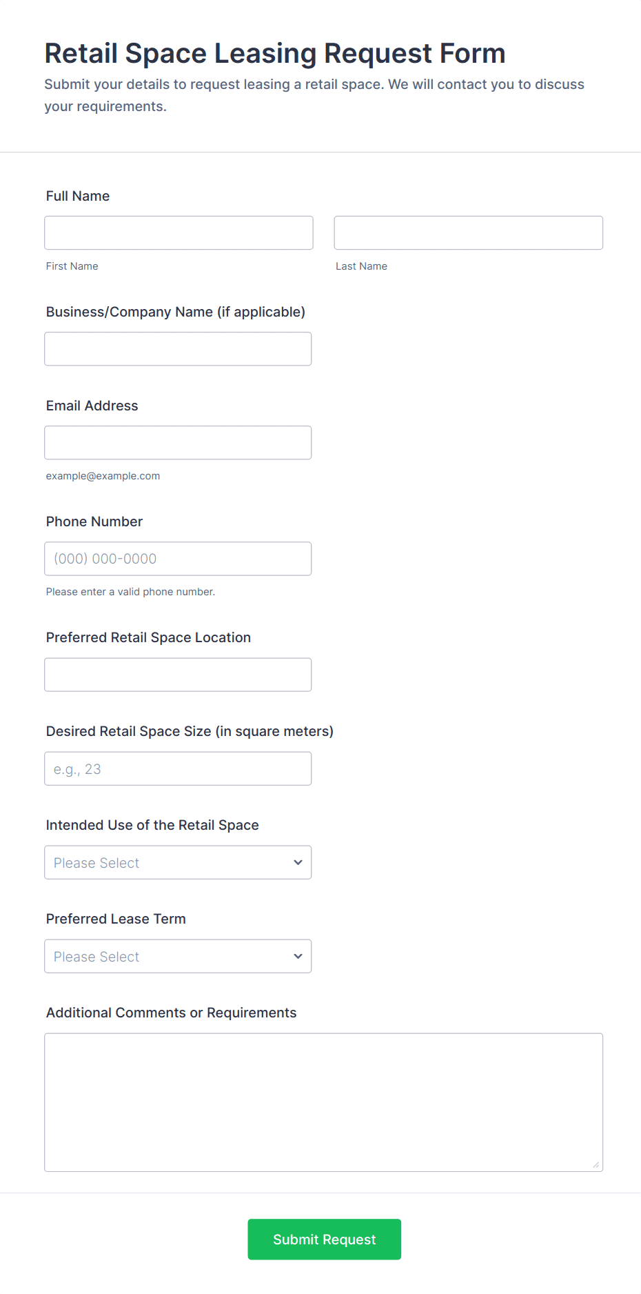 If you have a real estate listing on a website, you can use this Buyer Information Form to gather information regarding their property preferences in full detail, budget information and contact details.