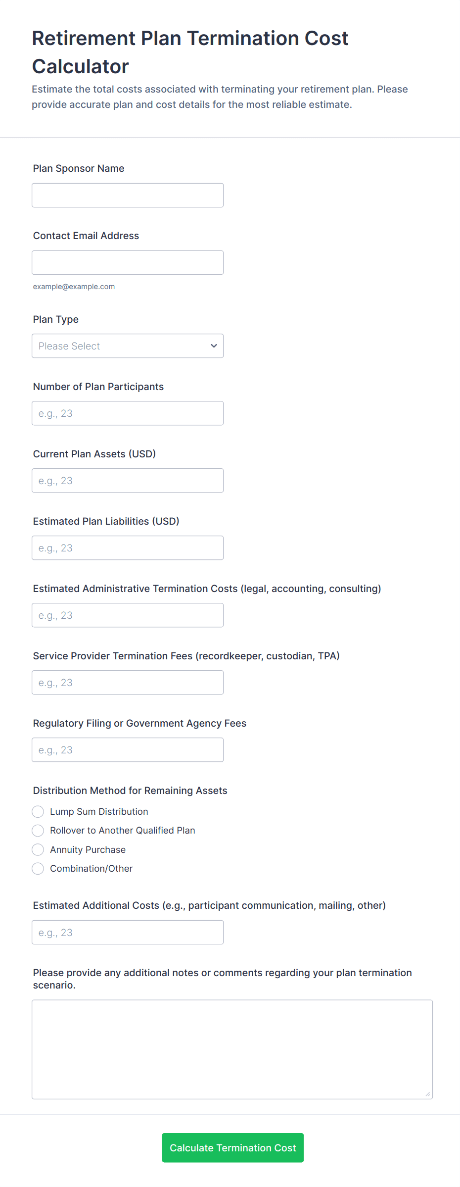 Calculation forms are specialized online forms designed to perform automatic calculations based on user input. These forms are commonly used to estimate costs, calculate totals, generate quotes, assess scores, or process any data that requires real-time mathematical operations. Typical use cases include order forms that tally product prices, loan calculators that estimate monthly payments, grade calculators for students, BMI calculators for health assessments, and budget planners for personal or business finance. Calculation forms streamline complex processes by providing instant results, reducing manual errors, and enhancing user experience.