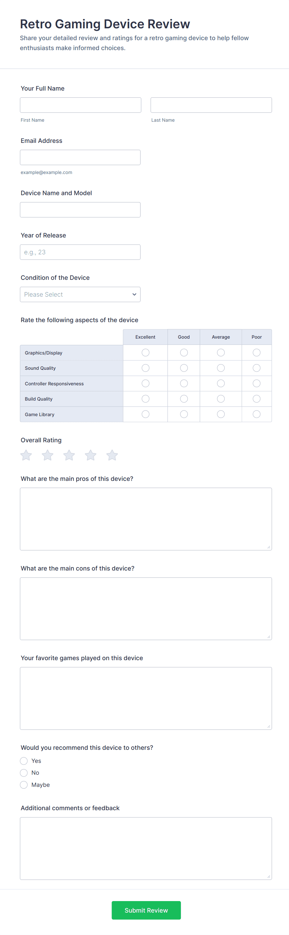 A product review form is a feedback survey that is used by businesses who want to get honest feedback from their customers. Customize and share online with no coding.