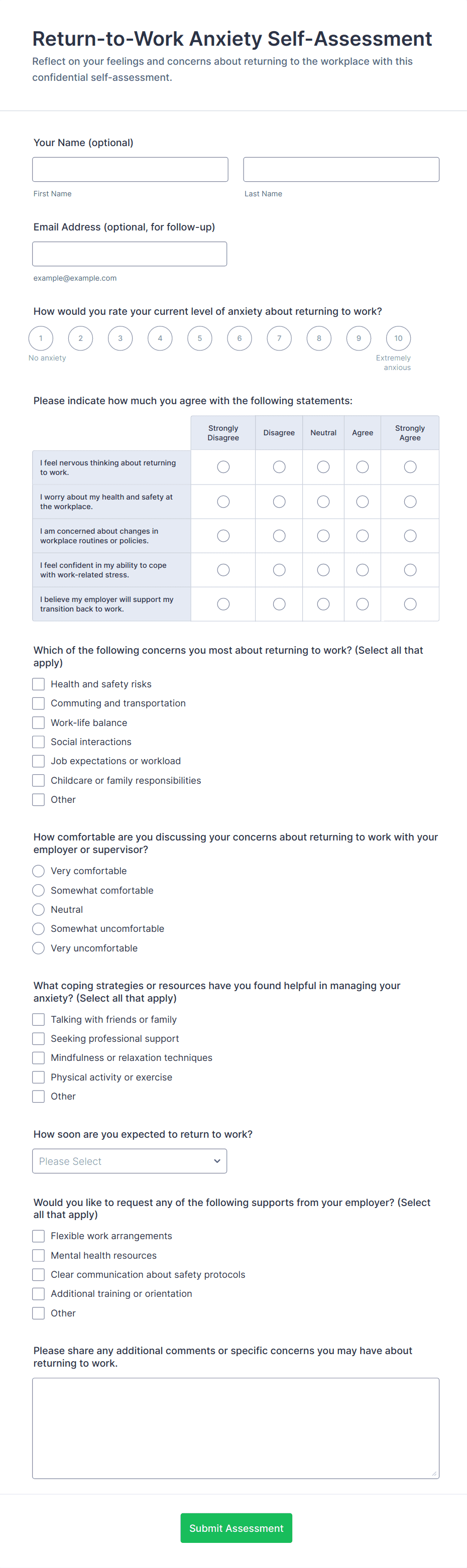 - General Return Forms: May require only basic information about absence and readiness to return.