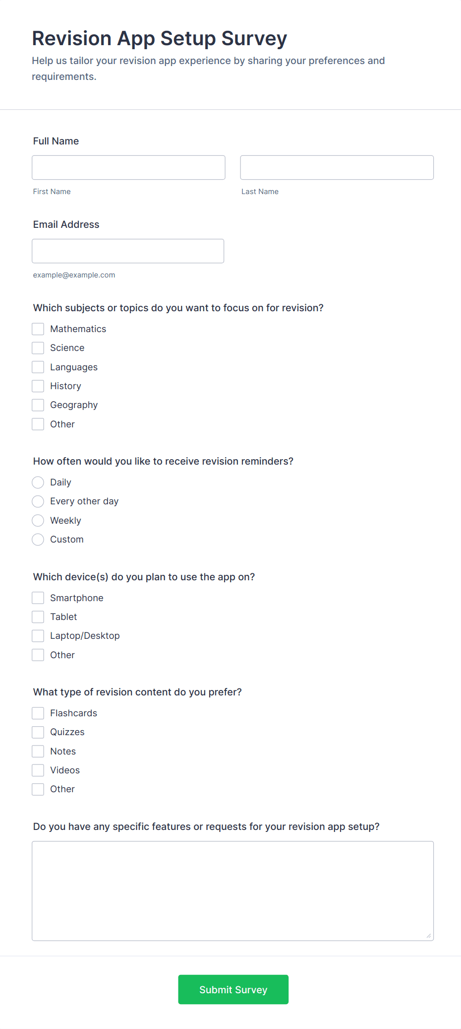 • For parent surveys: Add satisfaction ratings, communication feedback, and suggestions for improvement.