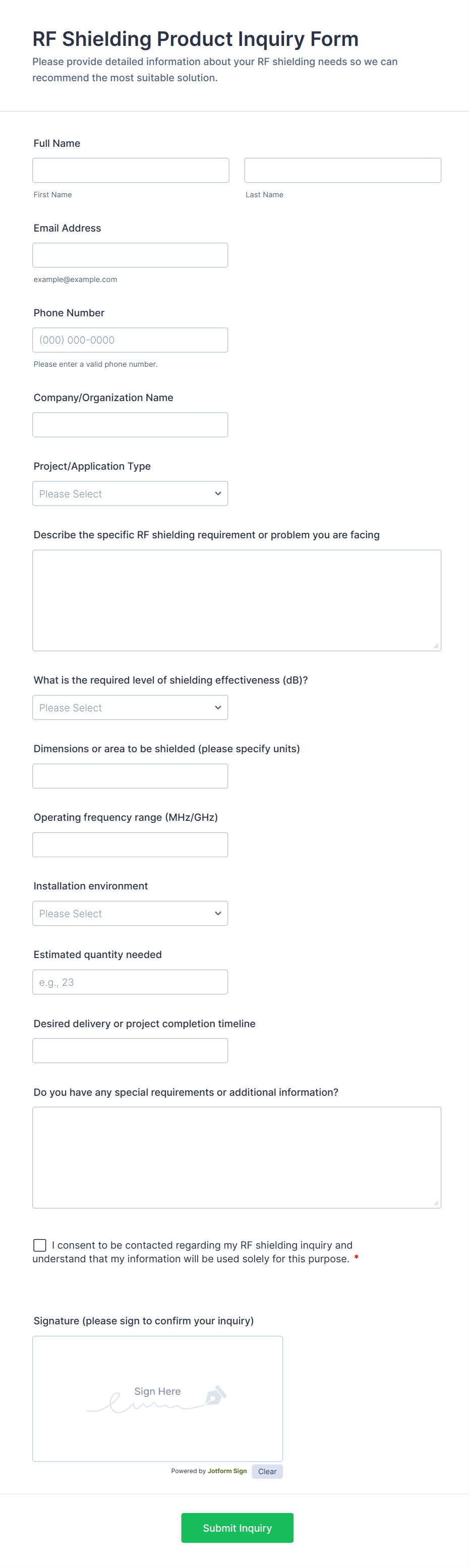 3. What information should be included in an inquiry form?