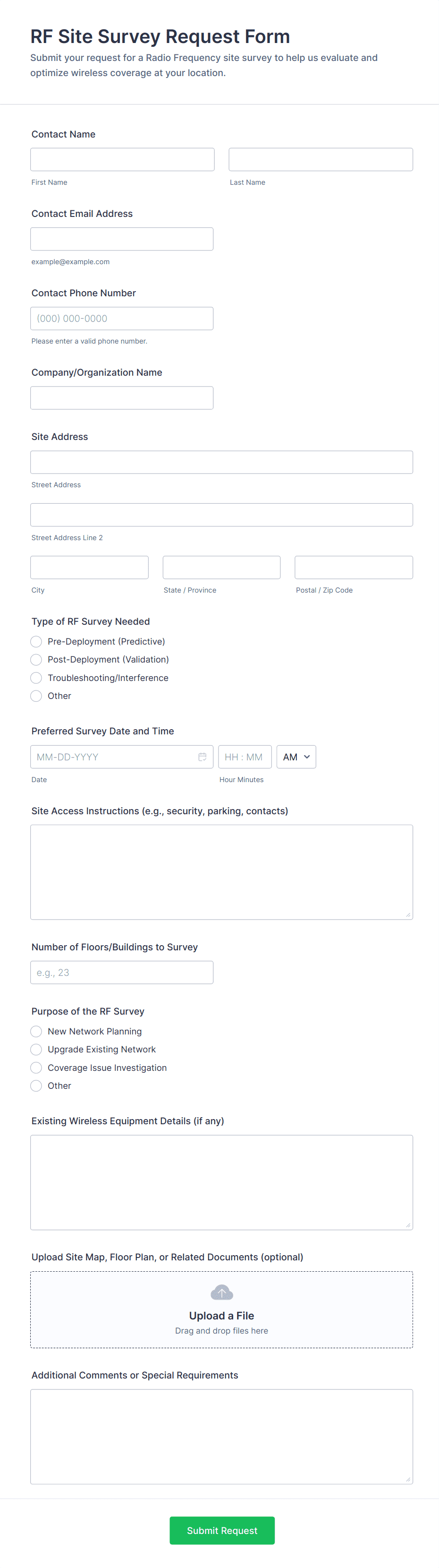IT Request Forms are digital tools designed to streamline the process of submitting, tracking, and managing requests related to information technology services within an organization. These forms can be used for a wide range of IT needs, such as reporting technical issues, requesting new hardware or software, seeking access to specific systems, or initiating IT support tickets. By providing a standardized way for employees, students, or clients to communicate their IT requirements, these forms help ensure that requests are accurately captured and efficiently routed to the appropriate IT personnel for resolution. Common use cases include onboarding new employees with the necessary tech resources, reporting equipment malfunctions, or requesting software installations and upgrades.