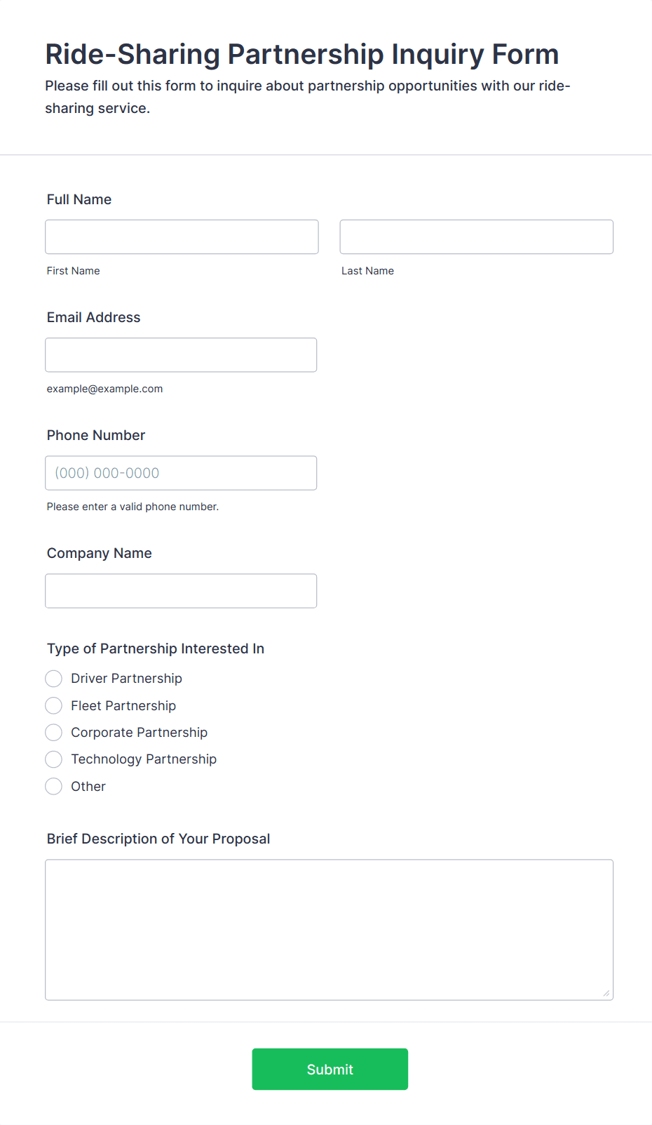 • Sales or quote request forms could ask for company details, budget, and specific service interests.