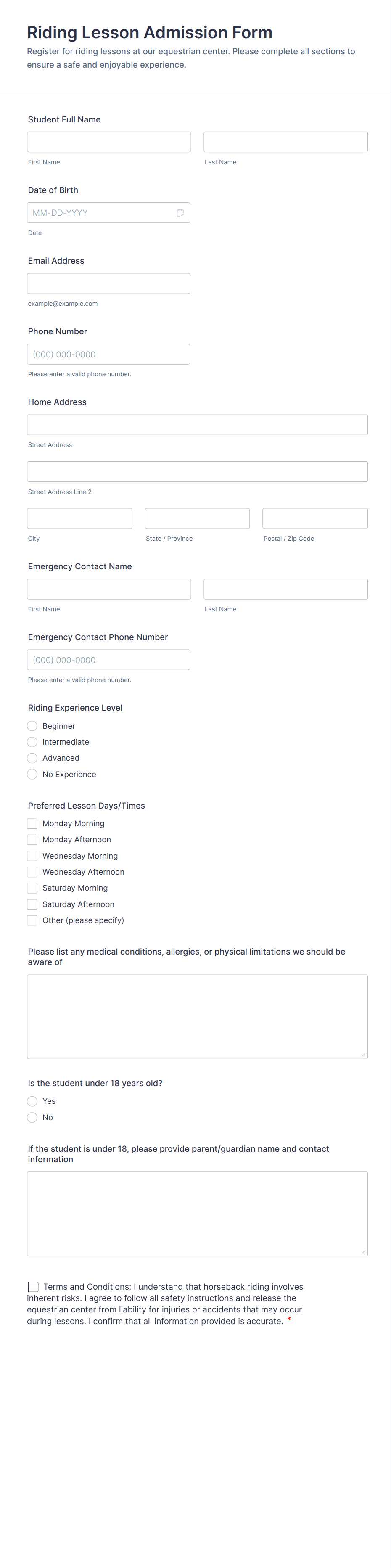 • Event or Camp Registration: May require scheduling preferences, equipment needs, and dietary restrictions.
