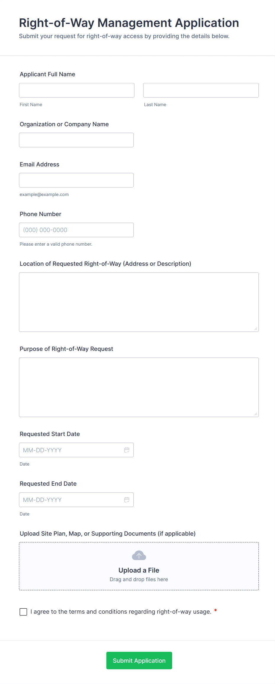 Infrastructure forms are structured documents used to request, track, and document infrastructure work such as IT infrastructure changes, facility upgrades, network setup, and operational improvements. They help teams collect consistent details about infrastructure needs, scope, timelines, risk, approvals, and implementation steps so changes can be planned and executed safely. Infrastructure forms are commonly used by IT teams, facilities departments, operations teams, and project managers for requests like network provisioning, server changes, hardware installation, building utilities maintenance, and site readiness planning. By standardizing infrastructure workflows, these forms reduce miscommunication, improve accountability, and create clear records for audits and follow-up.