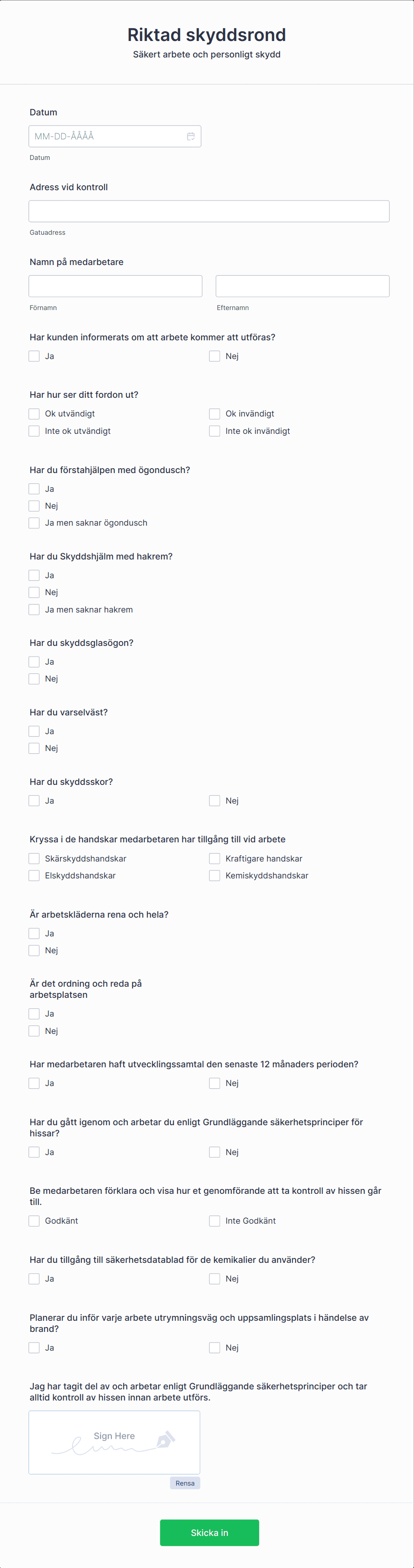 • Conditional Logic: Some forms may use conditional fields to display additional questions based on previous answers (e.g., if a hazard is found, prompt for corrective action details).