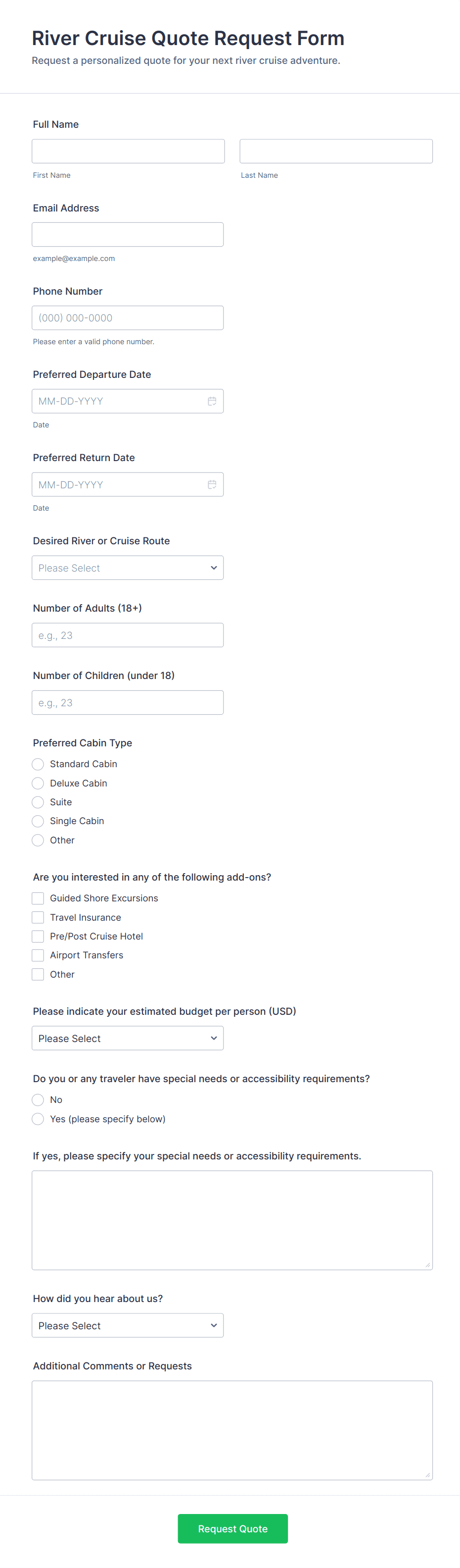 • For service-based quotes, include fields for location, preferred dates, and specific requirements.