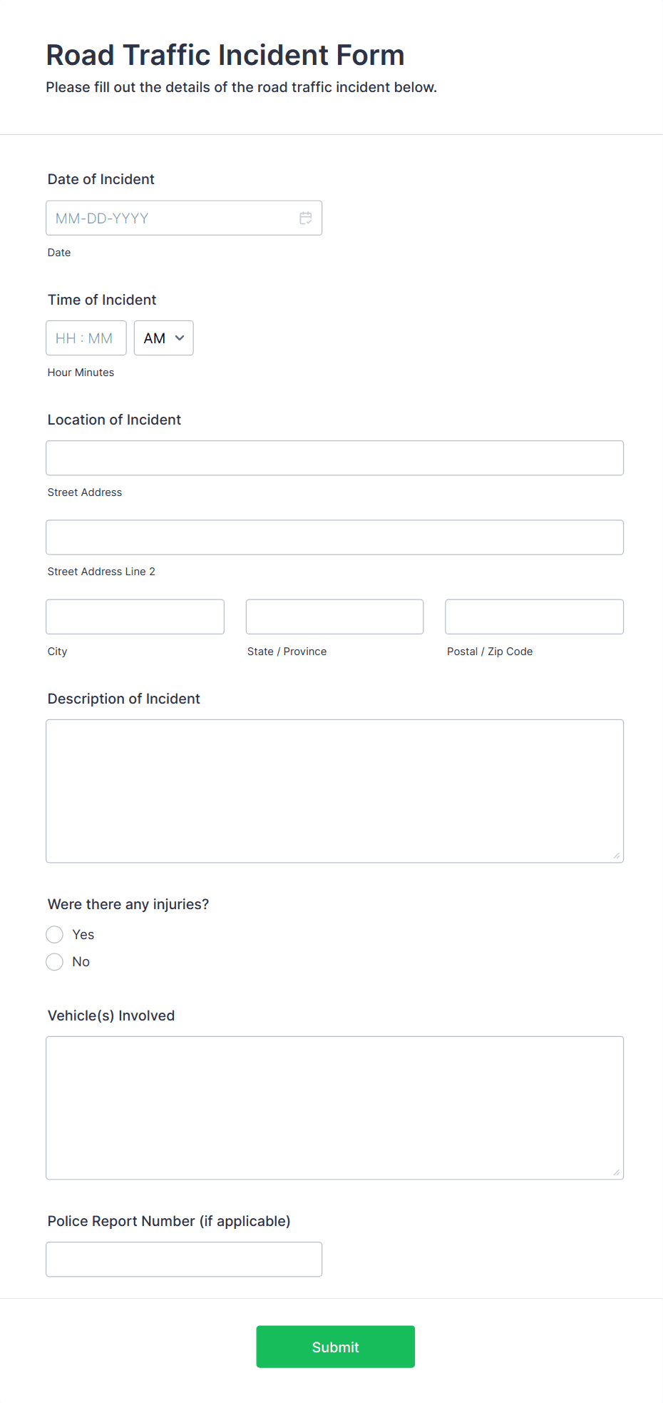 3. What information should be included in an incident report form?
