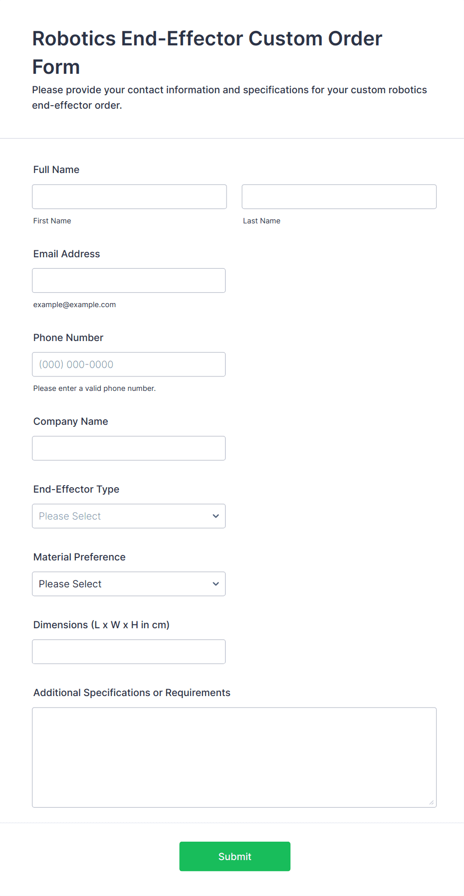 Custom Simple Order Form
