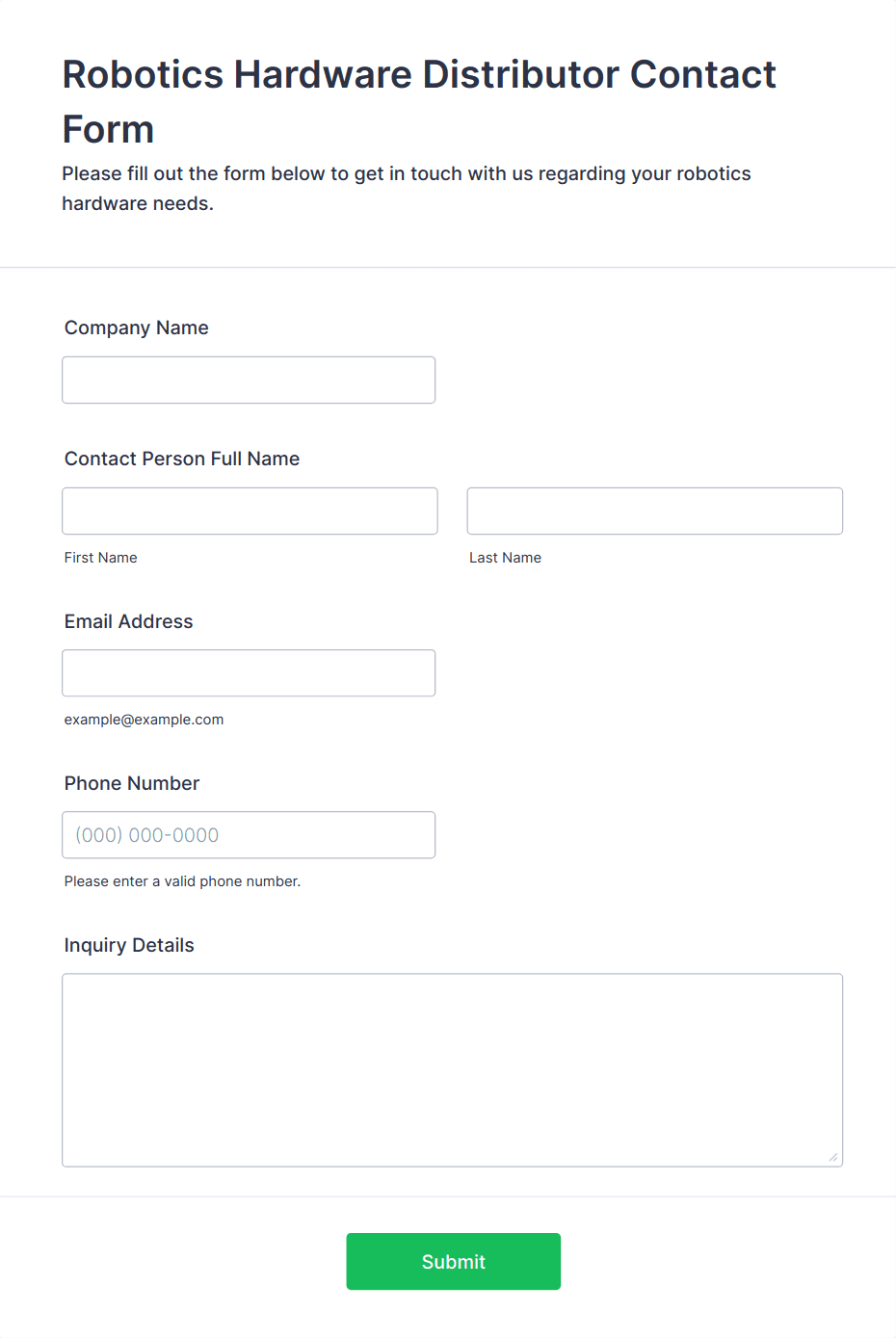 • A general inquiry form may only require basic fields (name, email, message).