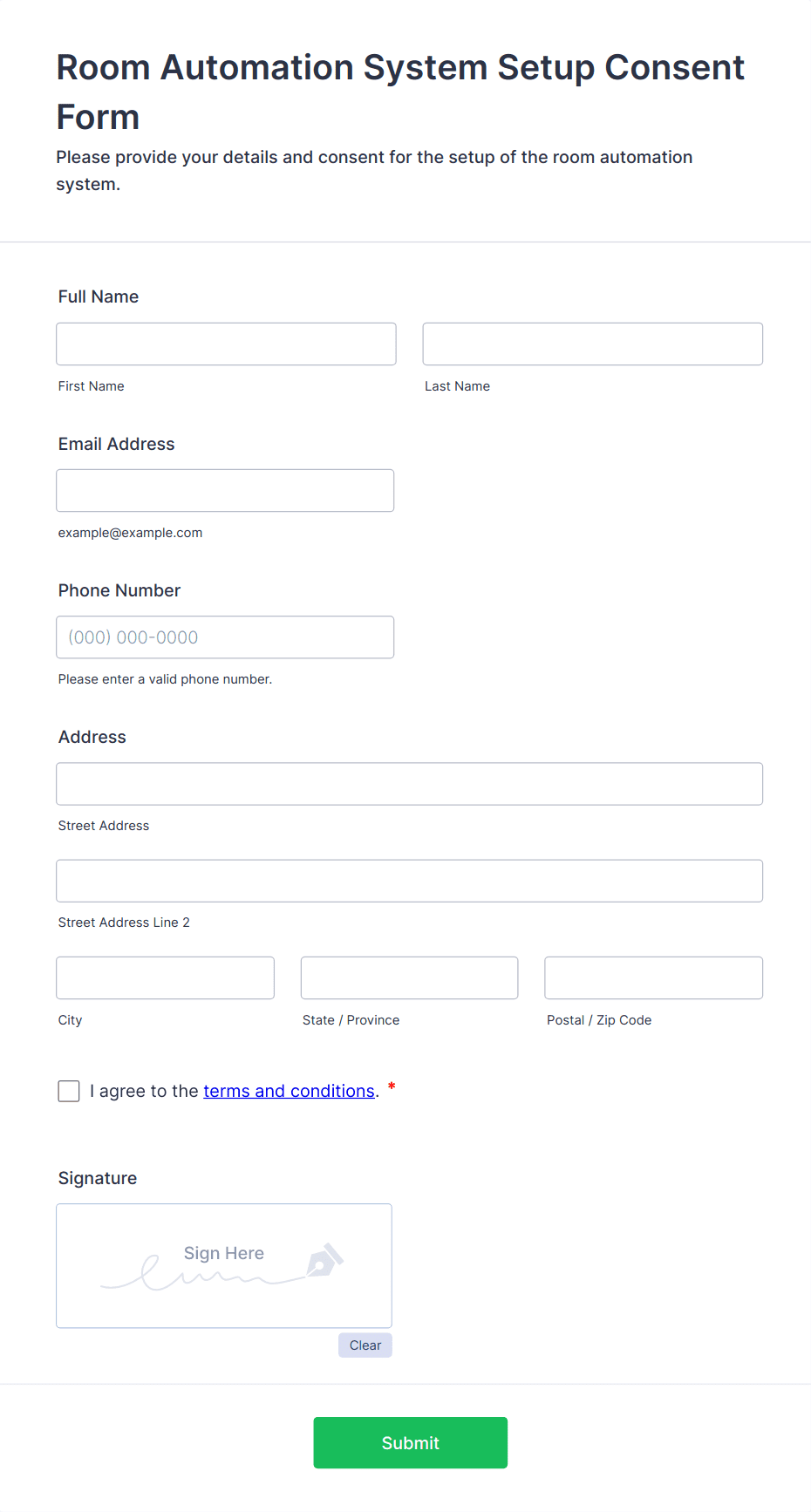 The form templates here are for informational purposes only. Jotform is not providing legal, financial, or other advice, or implying that the forms are legally valid in all or any jurisdictions. Before using any such form, consult an attorney and/or other applicable professionals to make sure that the form meets your needs, legally and otherwise.