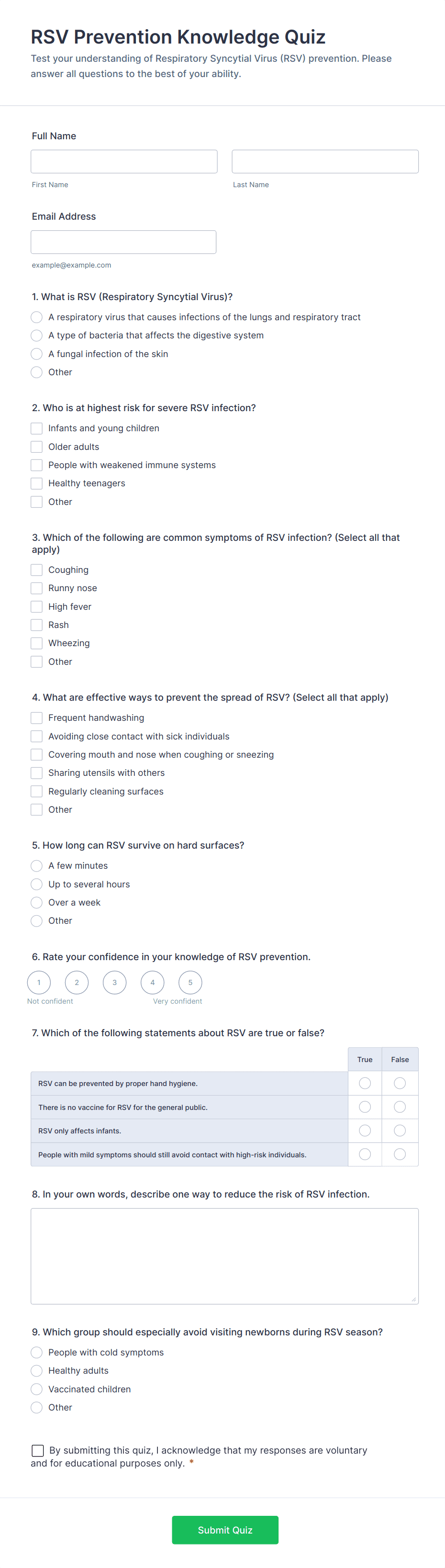 A Trivia Quiz Form is a versatile tool that can be adapted to various contexts and objectives, serving as a fun, interactive, and engaging way to entertain, educate, and connect with audiences.
