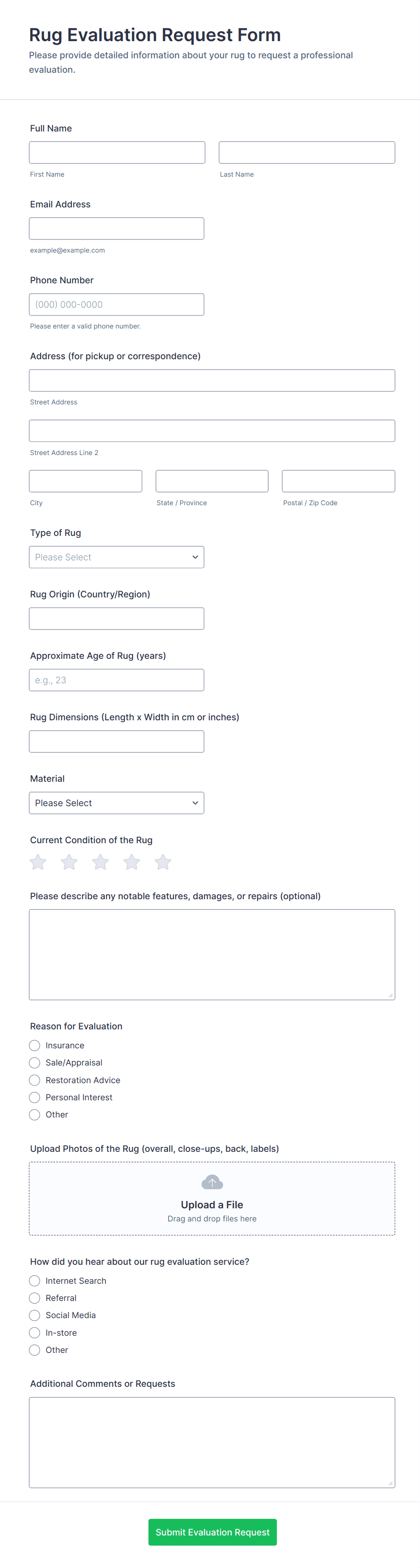 An Antique Appraisal Form is a form filled out by antique appraisers to estimate the worth of an antique object. No coding!