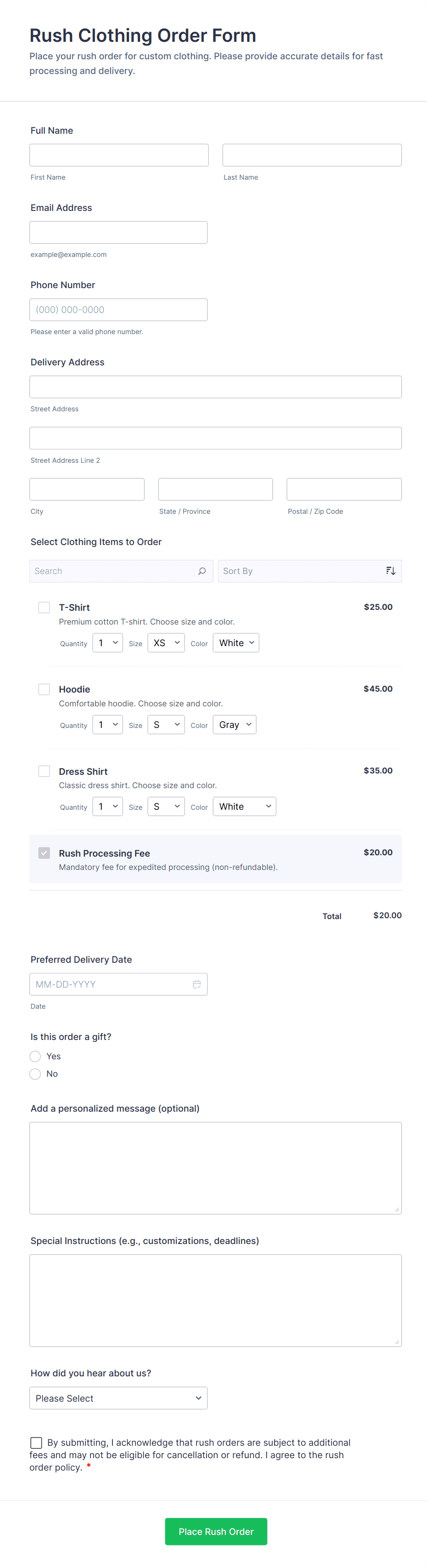 By following these steps, you can create a tailored apparel order form that simplifies the ordering process, reduces errors, and provides a seamless experience for both you and your customers.