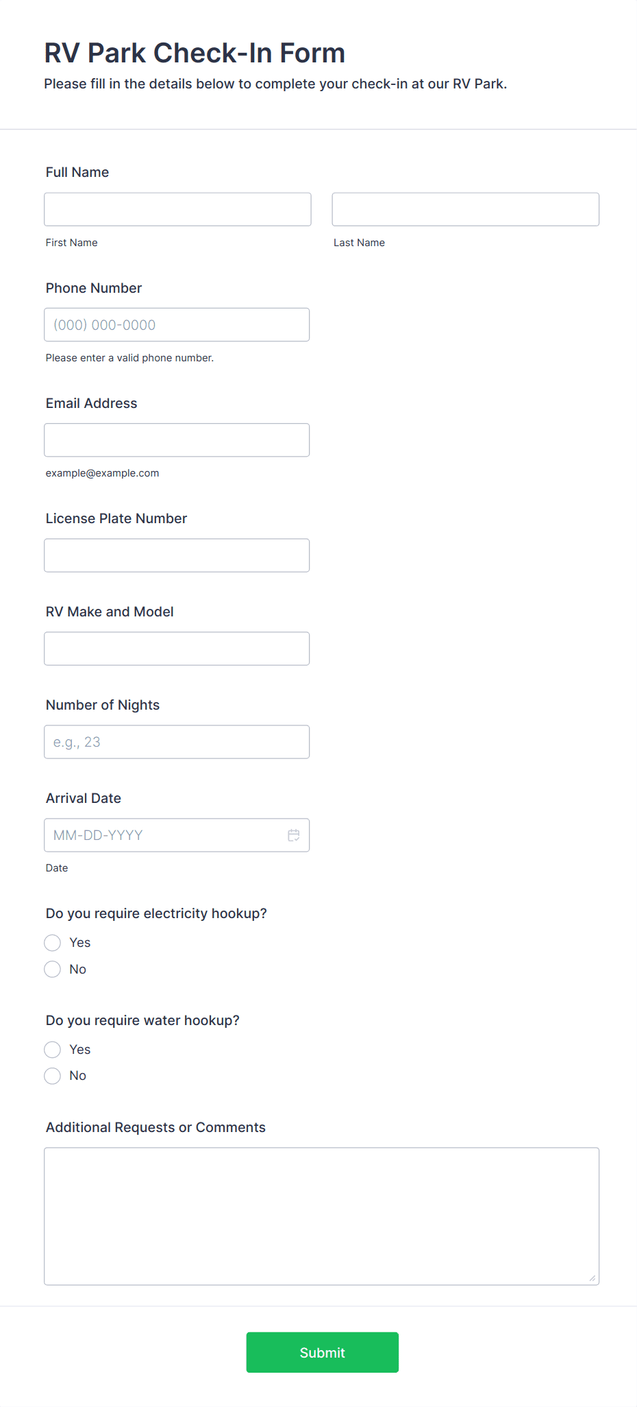 A simple form template which allows customers to submit their booking inquiry or any other comment with their contact information that would allow you to conveniently respond your customers to confirm the booking availability.