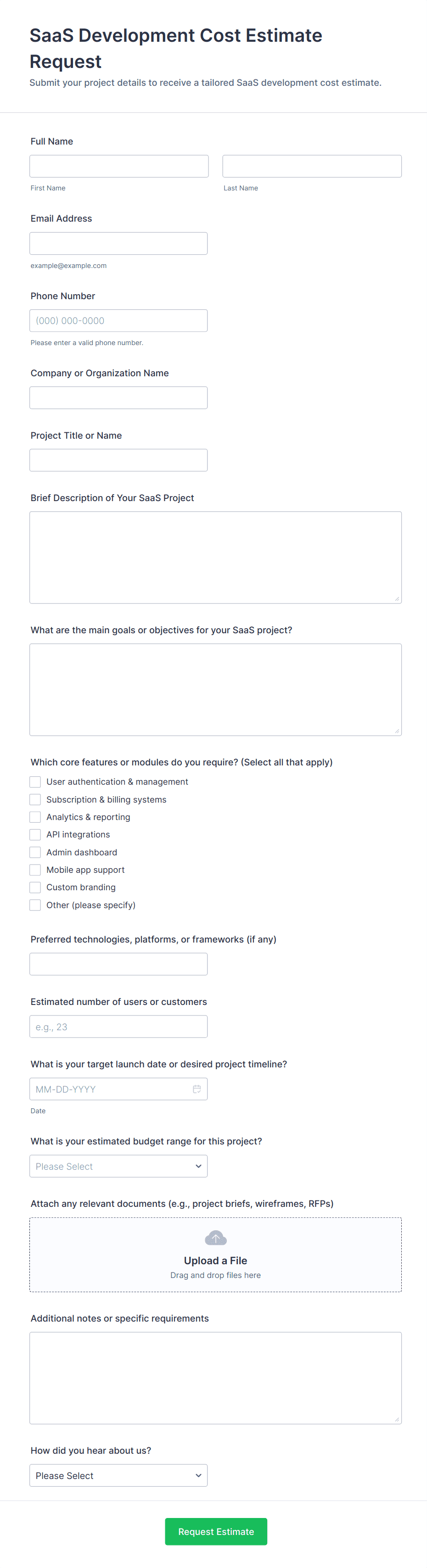 • For service-based quotes, include fields for location, preferred dates, and specific requirements.