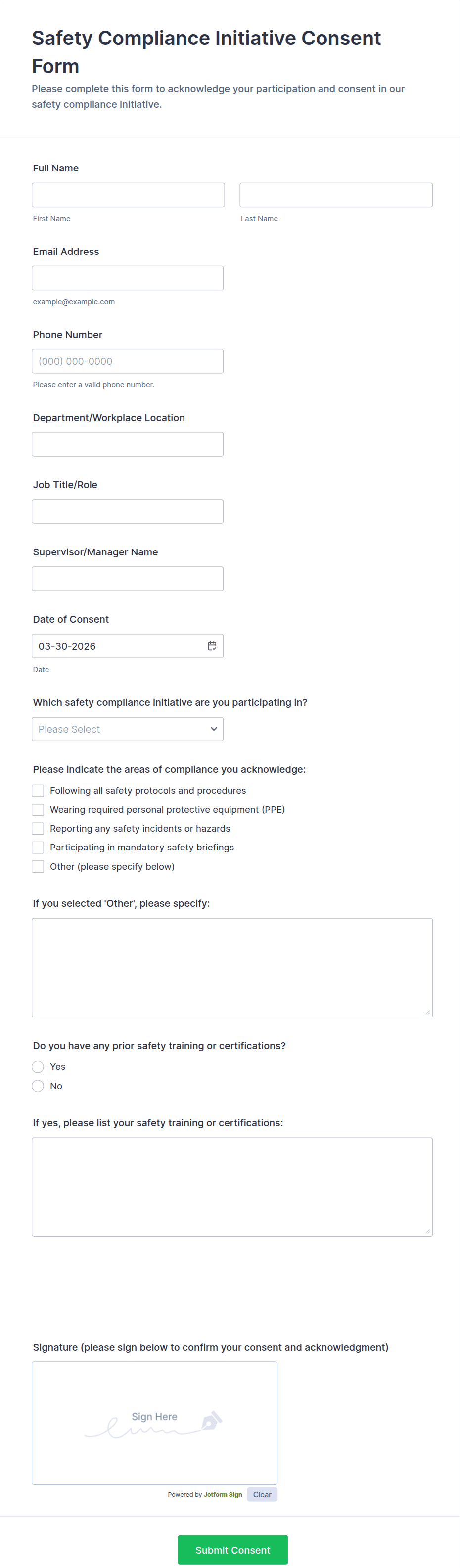 - Integrate with Jotform Tables for secure storage and easy access to consent records.