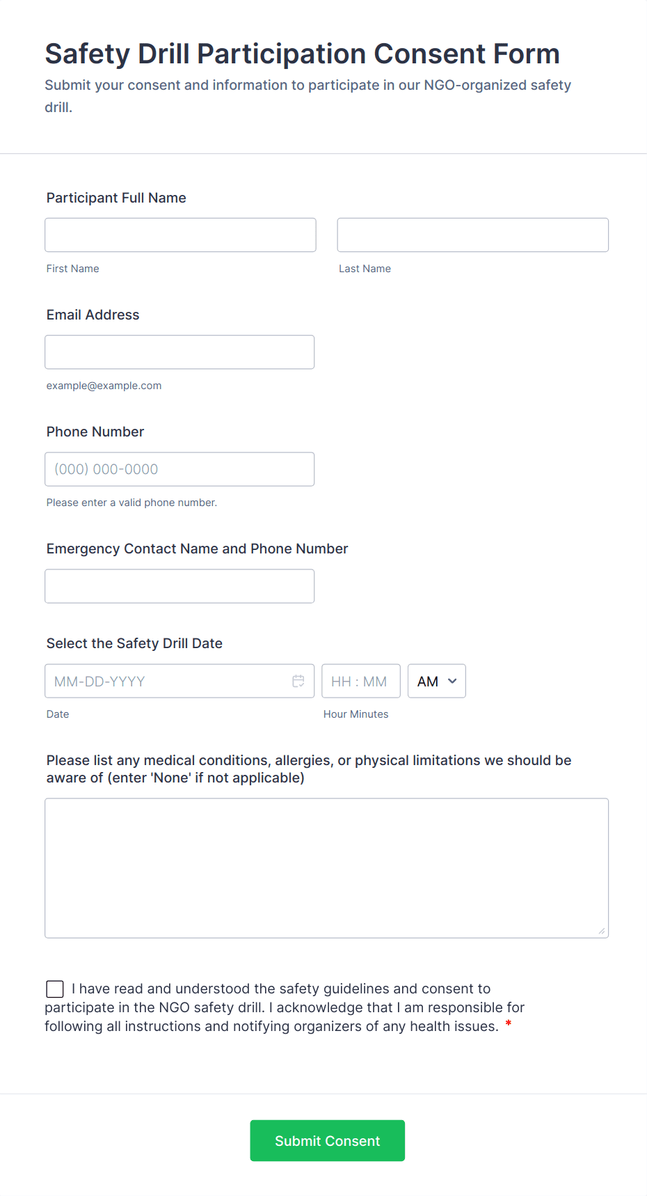 By following these steps, you can create informed consent forms that are comprehensive, user-friendly, and compliant with industry standards. Jotform’s flexible tools make it easy to adapt your form to any scenario, ensuring you collect the necessary permissions and protect both your organization and your participants.