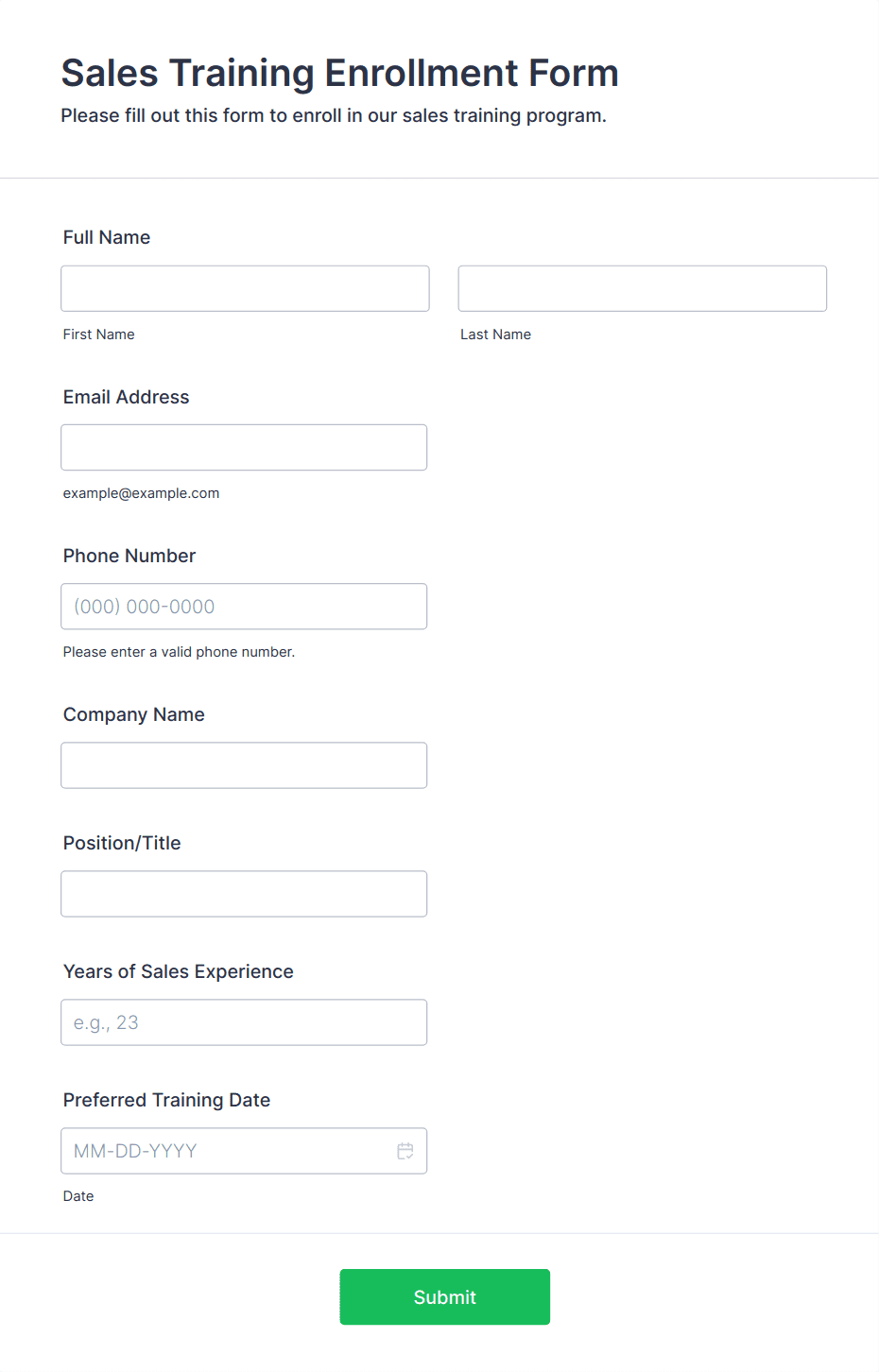 - For event or course registrations, include fields for session selection, preferences, or special requirements.
