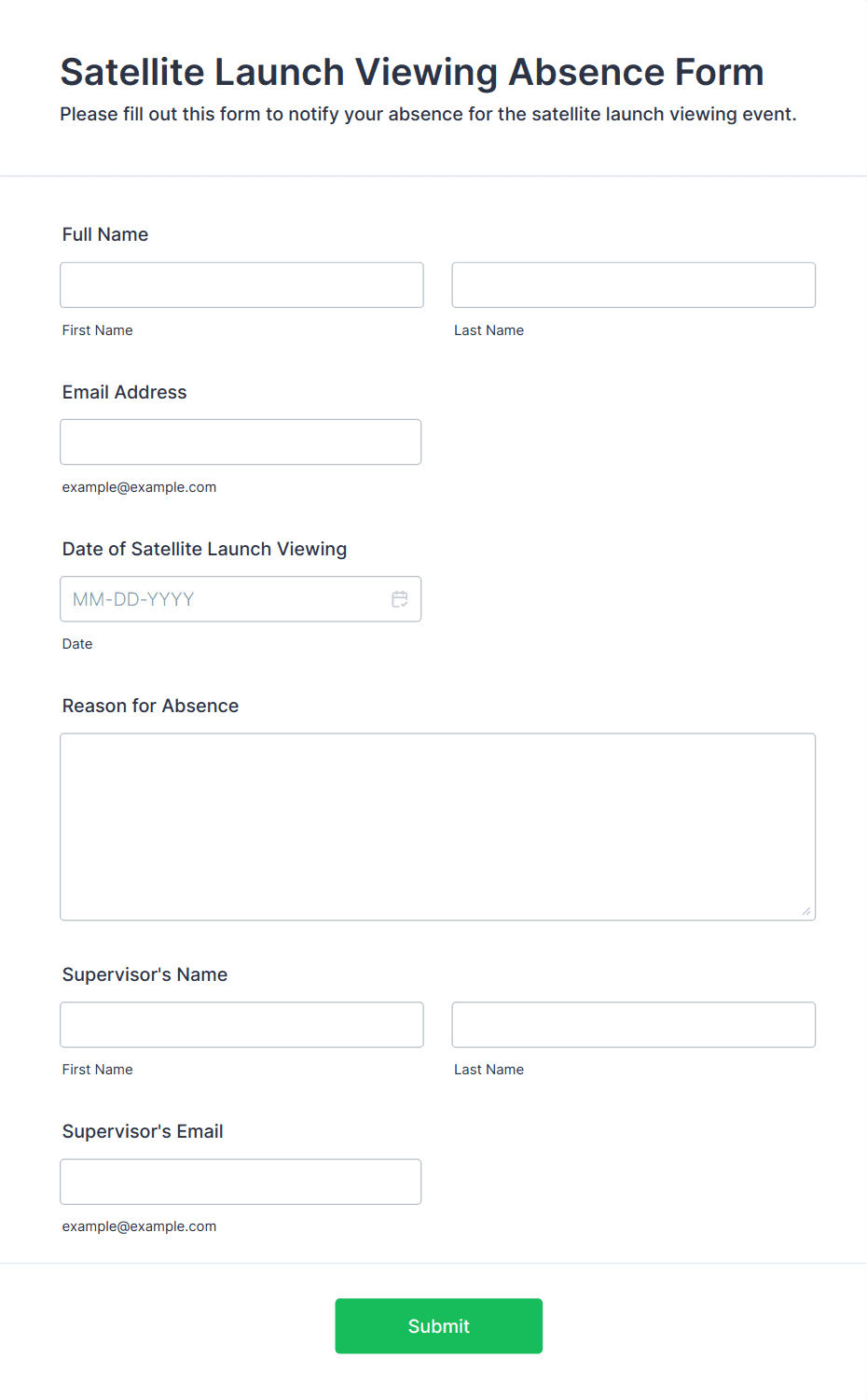 The form templates here are for informational purposes only. Jotform is not providing legal, financial, or other advice, or implying that the forms are legally valid in all or any jurisdictions. Before using any such form, consult an attorney and/or other applicable professionals to make sure that the form meets your needs, legally and otherwise.