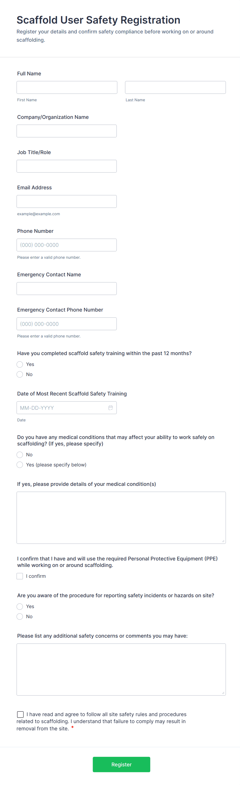Construction Lead Generation Form Template helps construction companies collect project inquiries and contact details online to grow their lead pipeline.