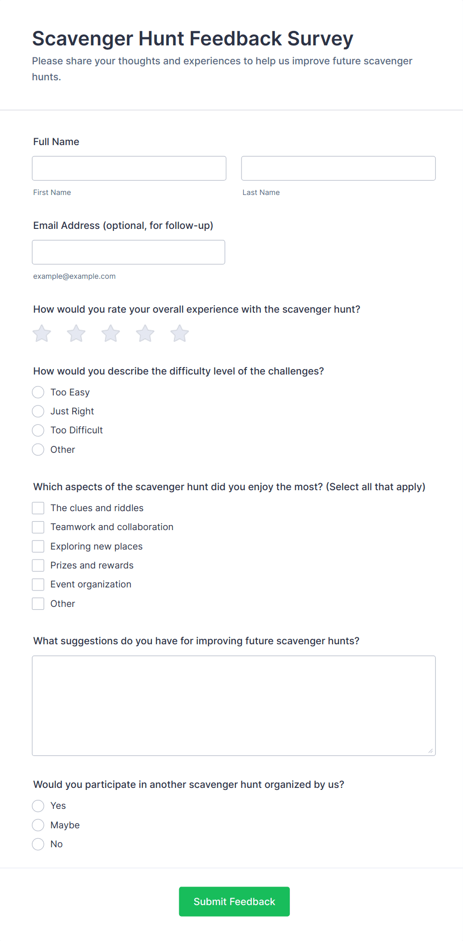 - Optional contact information fields if you wish to follow up with respondents