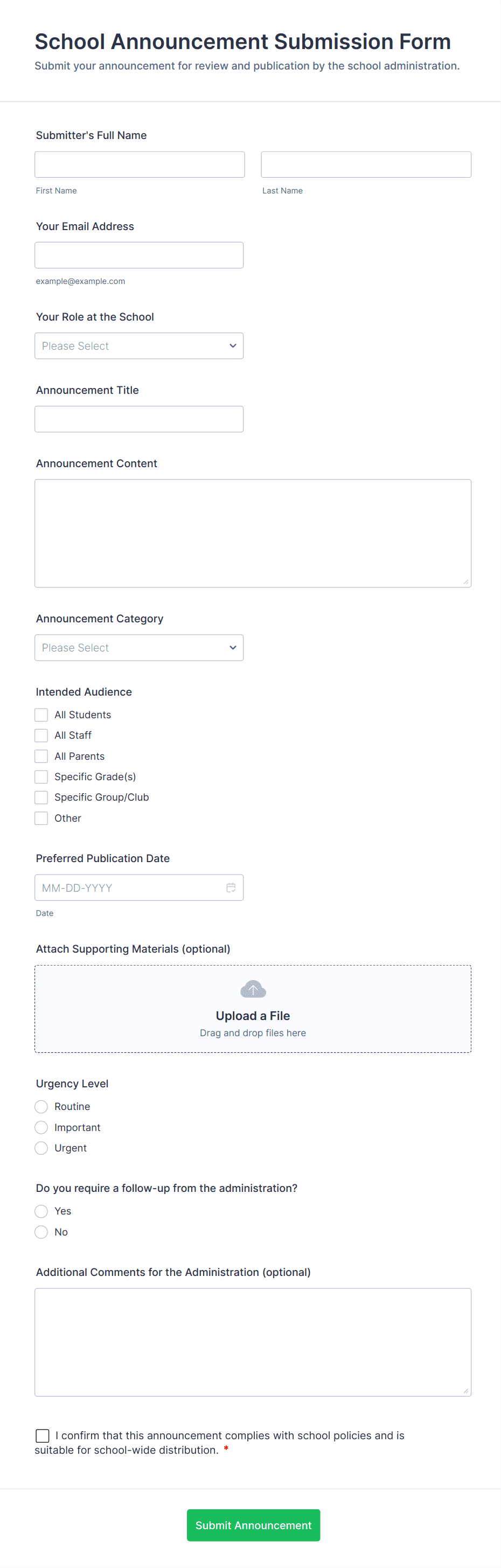 Absolutely. Forms can be tailored with specific fields, branding, and logic to suit the needs of different grade levels, departments, or academic programs.