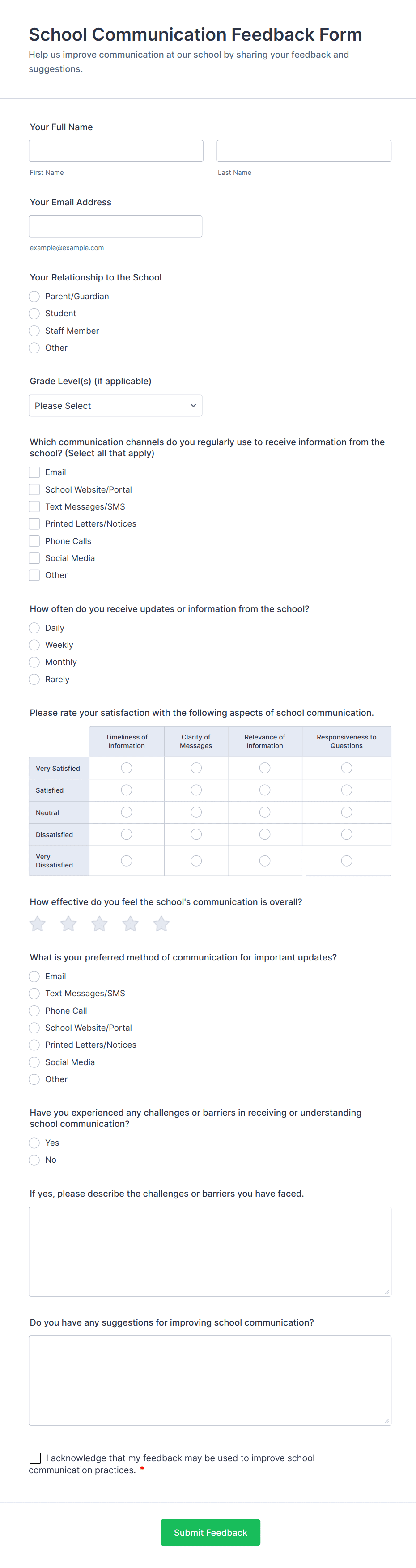 • For student or parent surveys, add questions about satisfaction, communication, and support services.