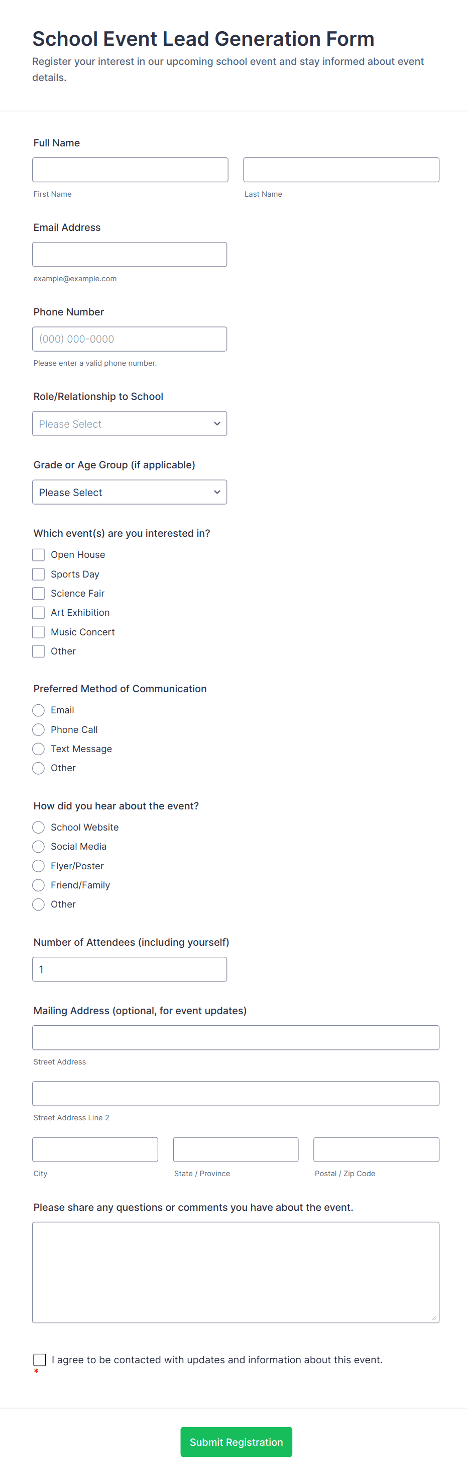 • Event registration forms for webinars, workshops, or conferences.