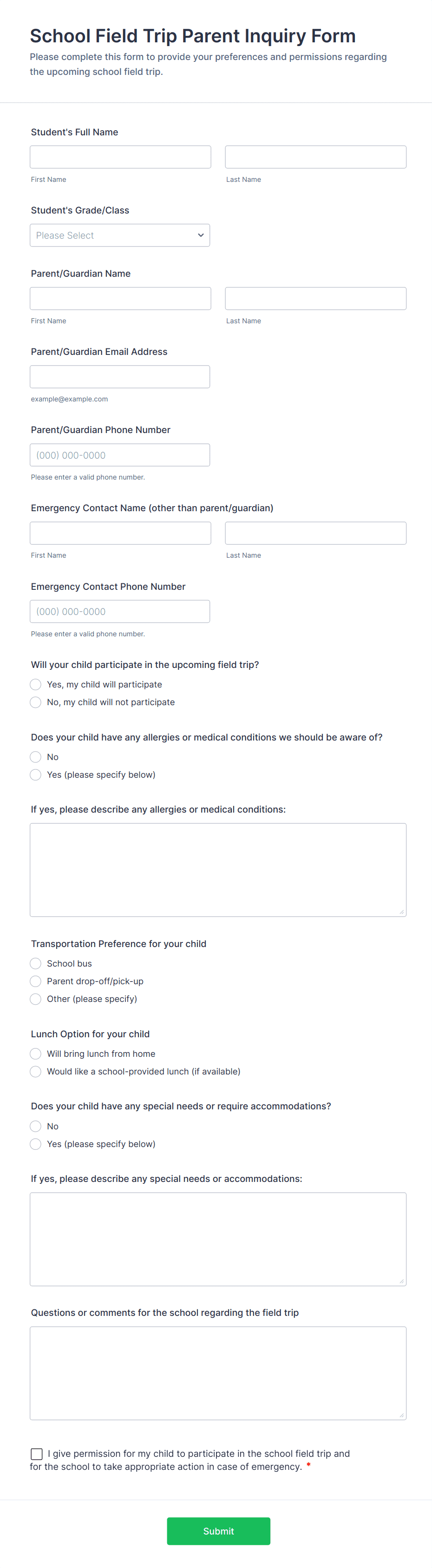 - Conditional logic can be used to show or hide fields based on user selections, ensuring a tailored experience for each type of inquiry