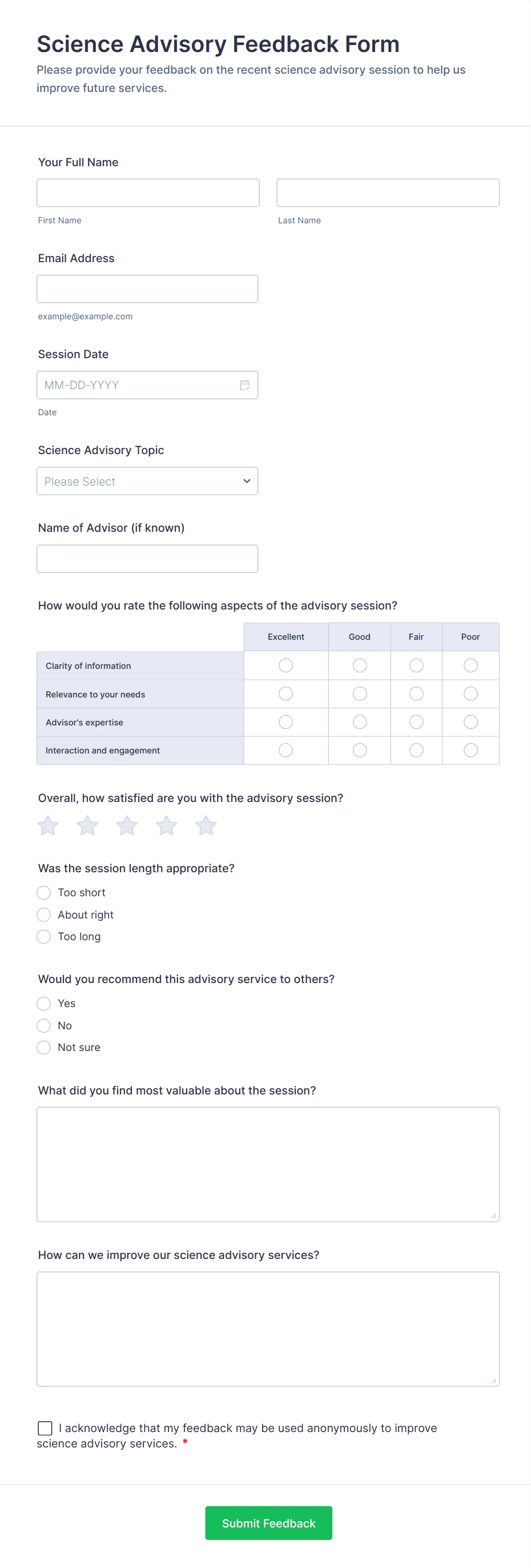 Session Feedback Form