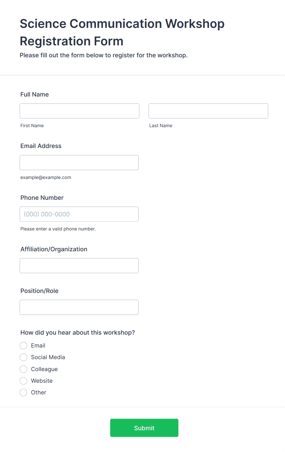 • Workshops and training sessions: Register participants, gather skill levels, and manage waitlists.