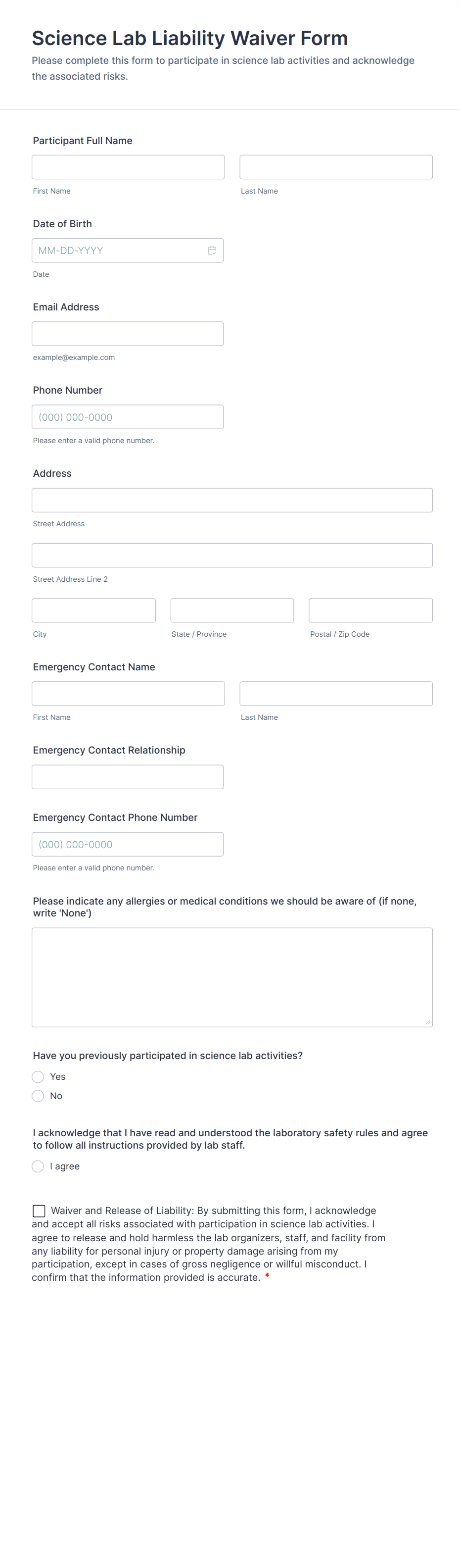A Lab Safety Form is a form template specifically designed to fortify safety in laboratories.