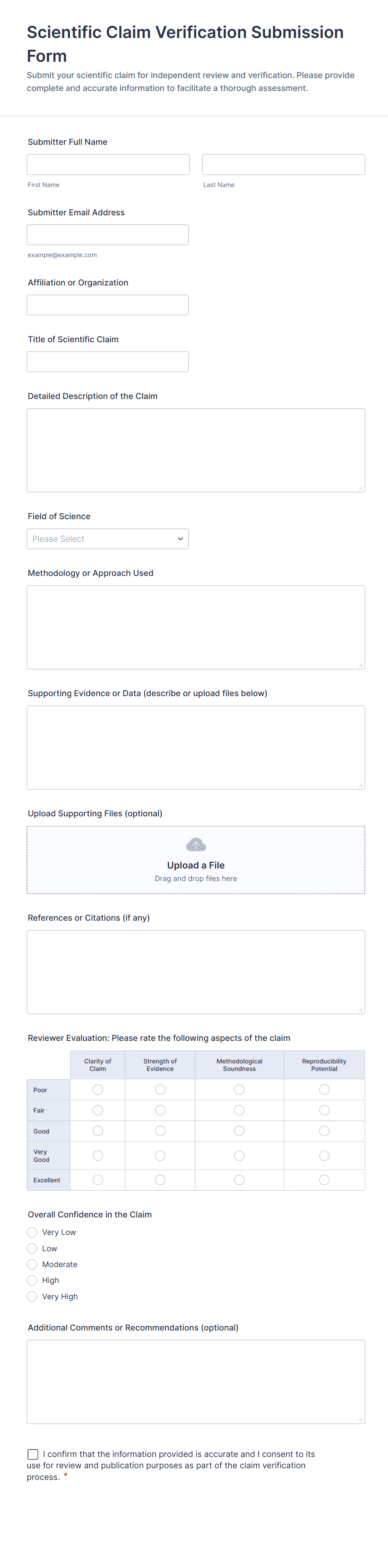Verification forms are specialized digital tools designed to authenticate, validate, or confirm information provided by individuals or organizations. These forms are commonly used to verify identities, credentials, employment status, addresses, or other critical data points in a secure and efficient manner. Typical use cases include onboarding new employees, confirming student enrollment, validating customer identities for financial services, or ensuring the accuracy of submitted documents in compliance processes. By streamlining the verification process, these forms help organizations reduce fraud, maintain regulatory compliance, and build trust with their stakeholders.