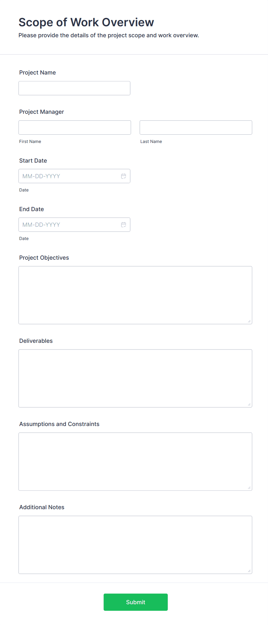 A business form template is a pre-designed digital form used to collect, process, and manage information for various business operations, such as client intake, employee onboarding, or order processing.