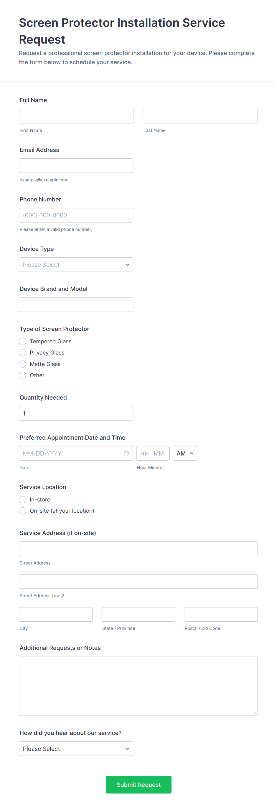 Request forms are essential tools for gathering and organizing information when someone needs to ask for something — whether it’s a service, resource, approval, or support. These forms streamline the process of submitting and managing requests in a wide range of scenarios, such as equipment requests, maintenance requests, time-off requests, IT support, purchase orders, facility bookings, and more. By providing a standardized way to collect all necessary details, request forms help organizations ensure that every request is clear, trackable, and actionable, reducing miscommunication and delays.