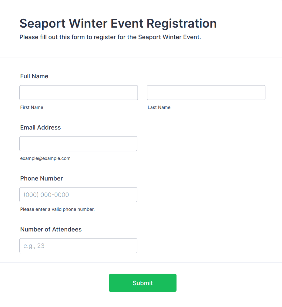 • Workshops and training sessions: Register participants, gather skill levels, and manage waitlists.