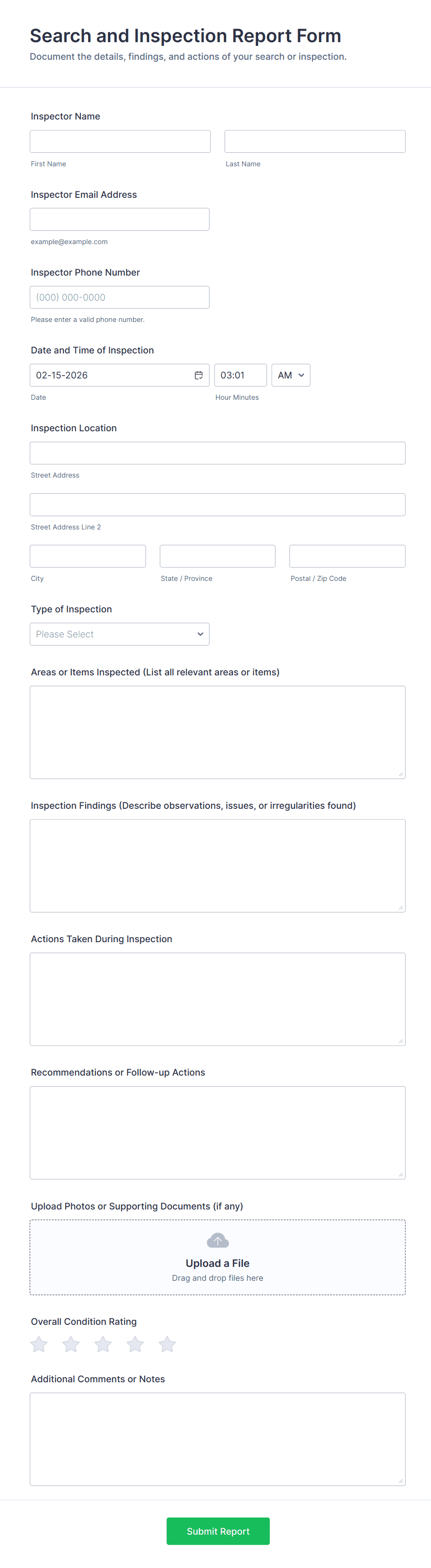Field Inspection Report Form