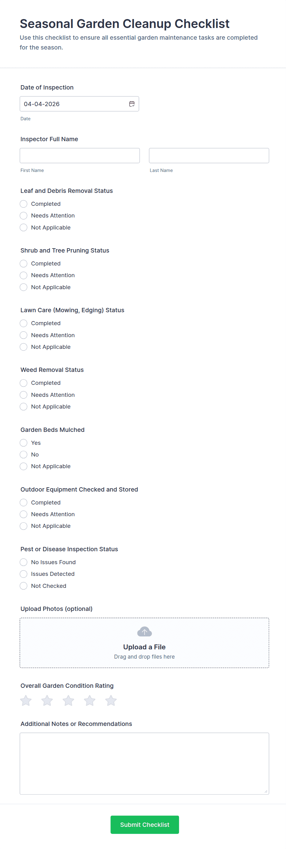 • For more complex checklists, add dropdowns, file upload fields (for attaching evidence or reports), or signature fields (for verification).