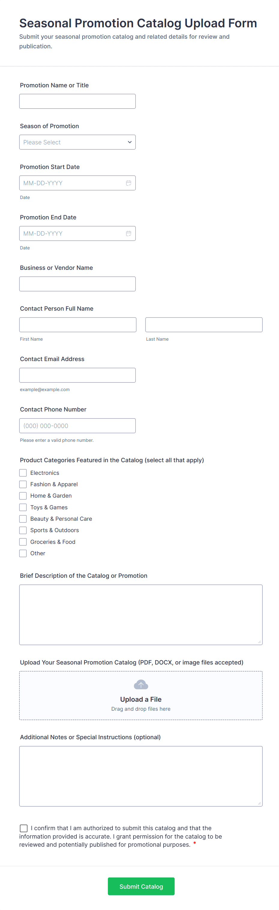 A Video and Photo Submission Form is a versatile tool designed to streamline the process of collecting video and photo submissions for contests, events, or campaigns