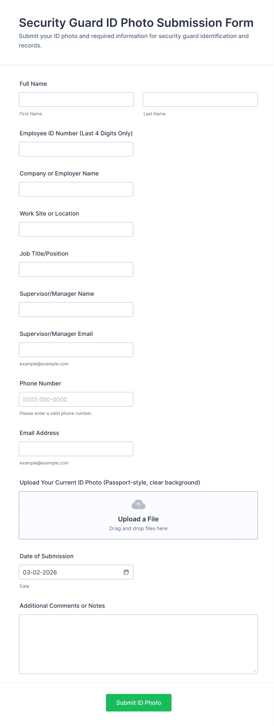 - Support Request Forms: Combine file upload with detailed problem description fields and contact information.