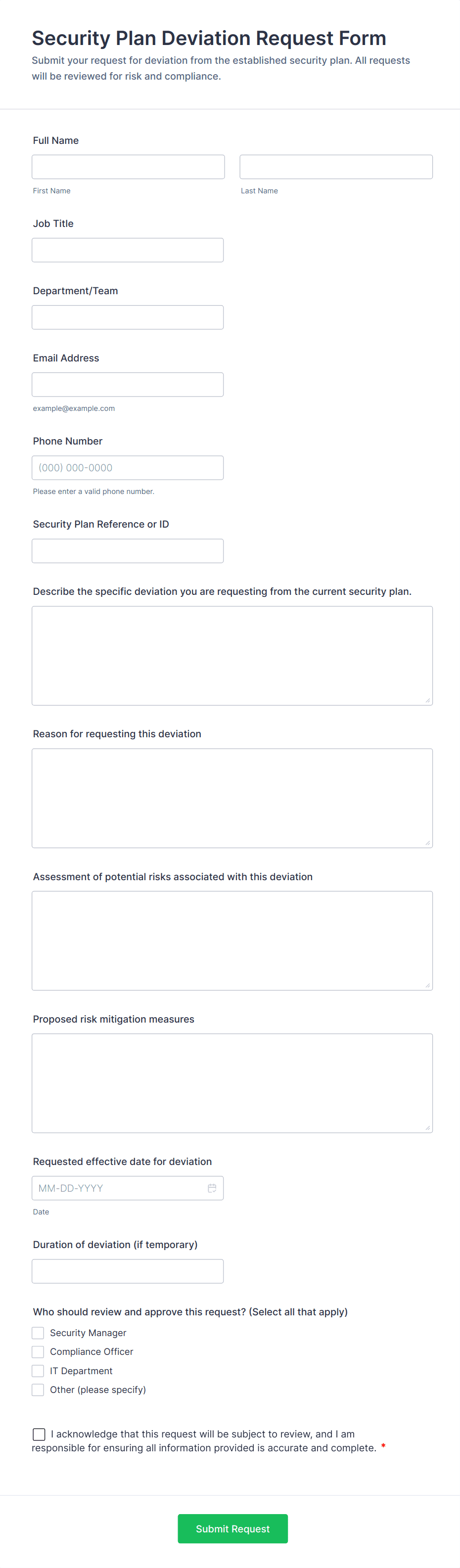 - Use conditional logic to show or hide fields based on the request type or user responses.