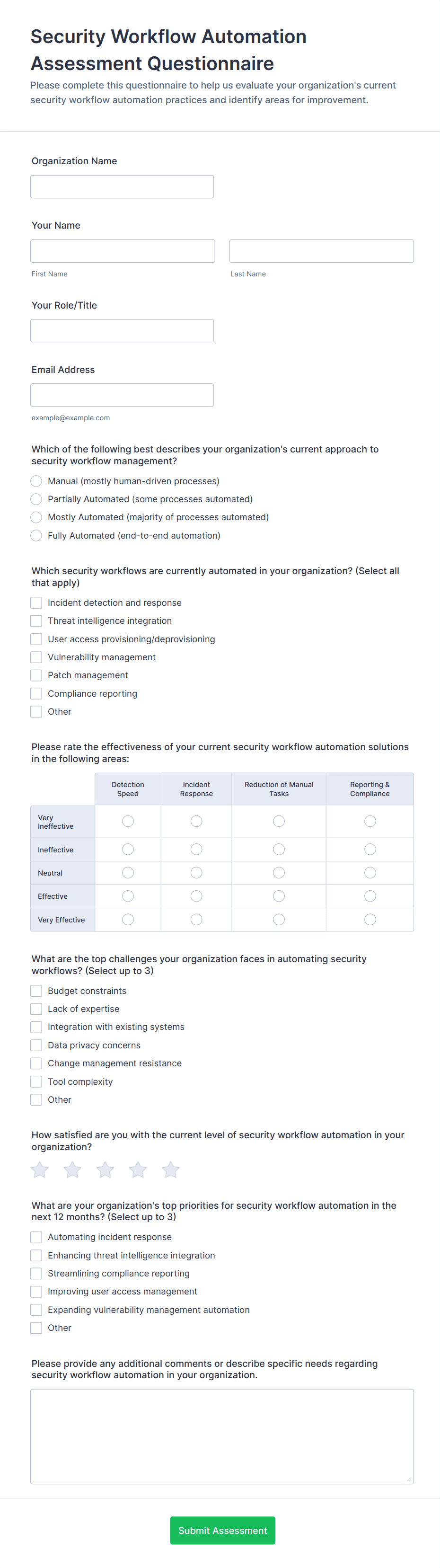• For customer feedback, include satisfaction ratings and open-ended comment fields.