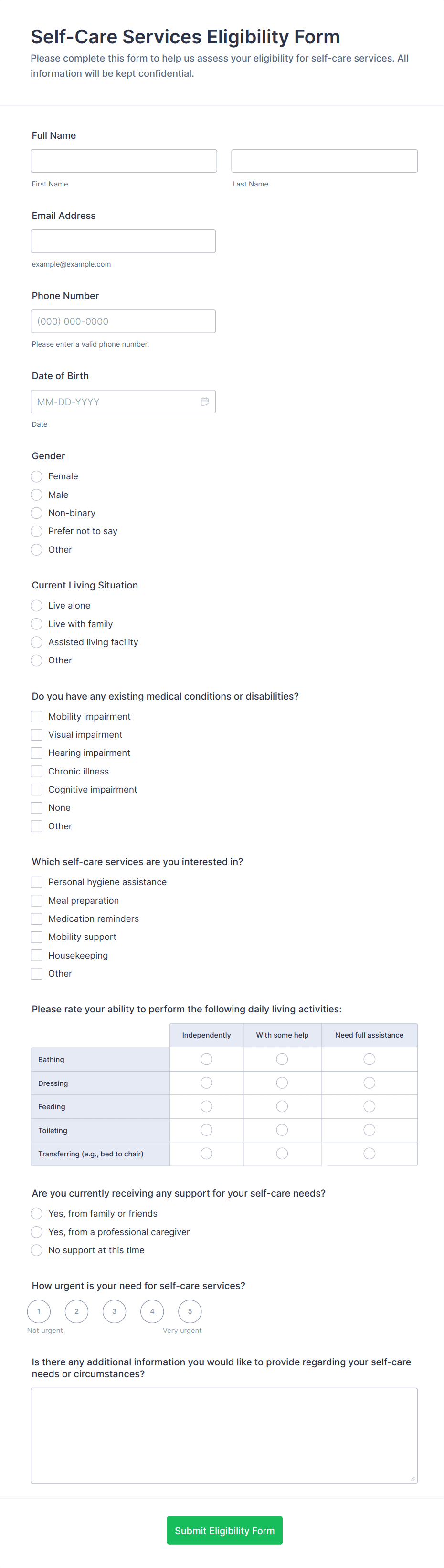 Intake forms are essential tools used to gather preliminary information from clients, patients, customers, or participants before providing a service or beginning a process. These forms streamline the onboarding process by collecting relevant details such as contact information, background data, preferences, and specific needs. Intake forms are widely used across various industries, including healthcare (patient intake), legal (client intake), education (student intake), human resources (employee onboarding), and service-based businesses (client consultations). By standardizing the information-gathering process, intake forms help organizations ensure consistency, improve efficiency, and deliver personalized experiences.
