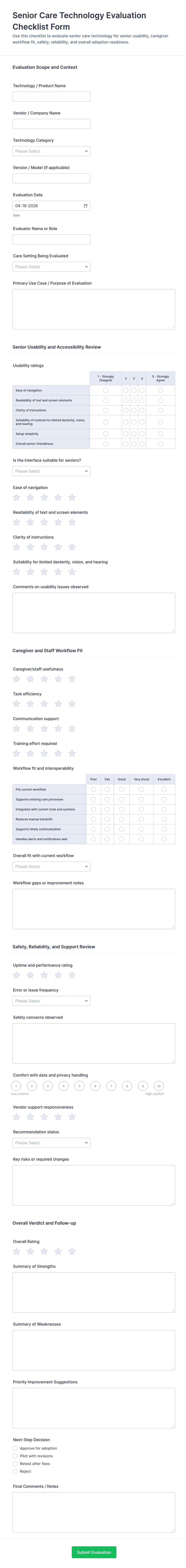 Checklist forms usually contain a list of tasks or items, checkboxes for completion, and may include fields for names, dates, comments, signatures, or supporting documentation.