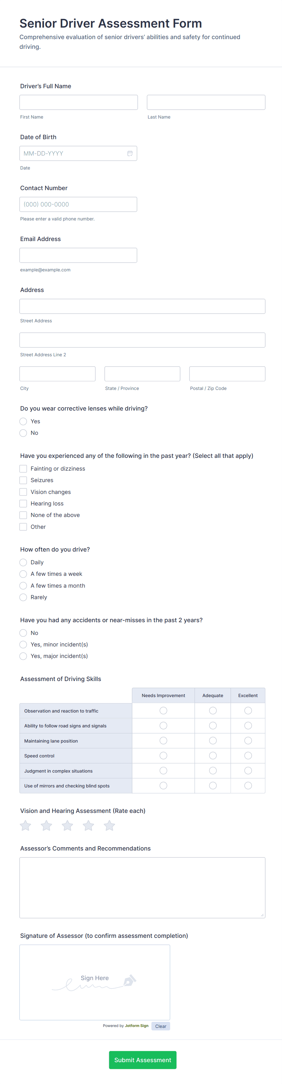 The form templates here are for informational purposes only. Jotform is not providing legal, financial, or other advice, or implying that the forms are legally valid in all or any jurisdictions. Before using any such form, consult an attorney and/or other applicable professionals to make sure that the form meets your needs, legally and otherwise.