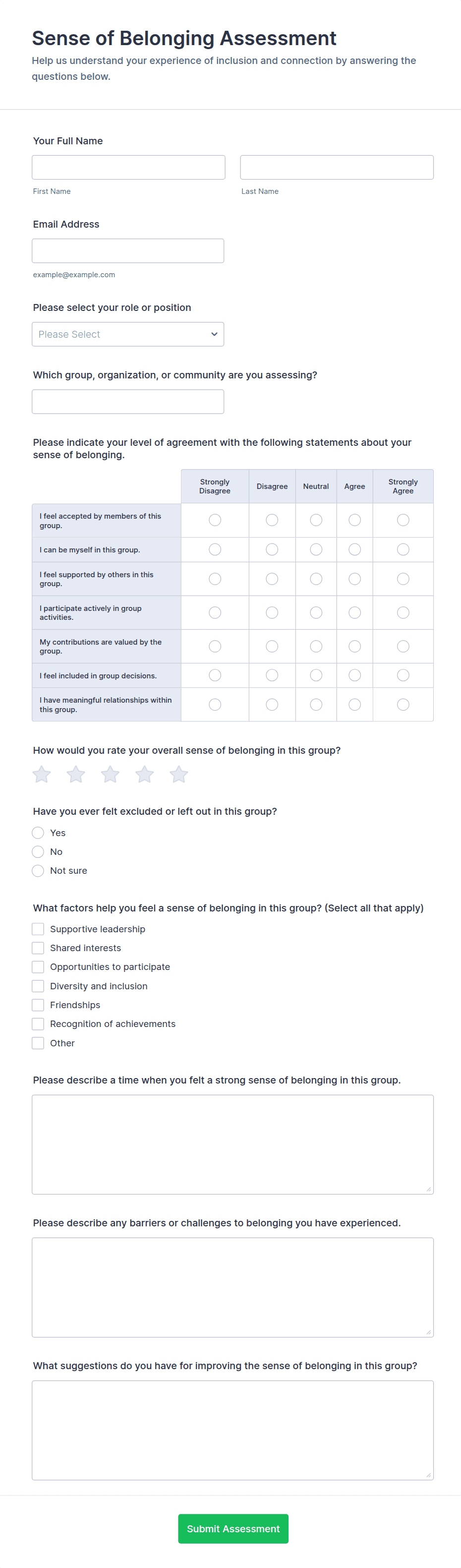 By following these steps, you can create a tailored assessment form that meets your specific needs, streamlines data collection, and provides actionable insights for your organization or project.
